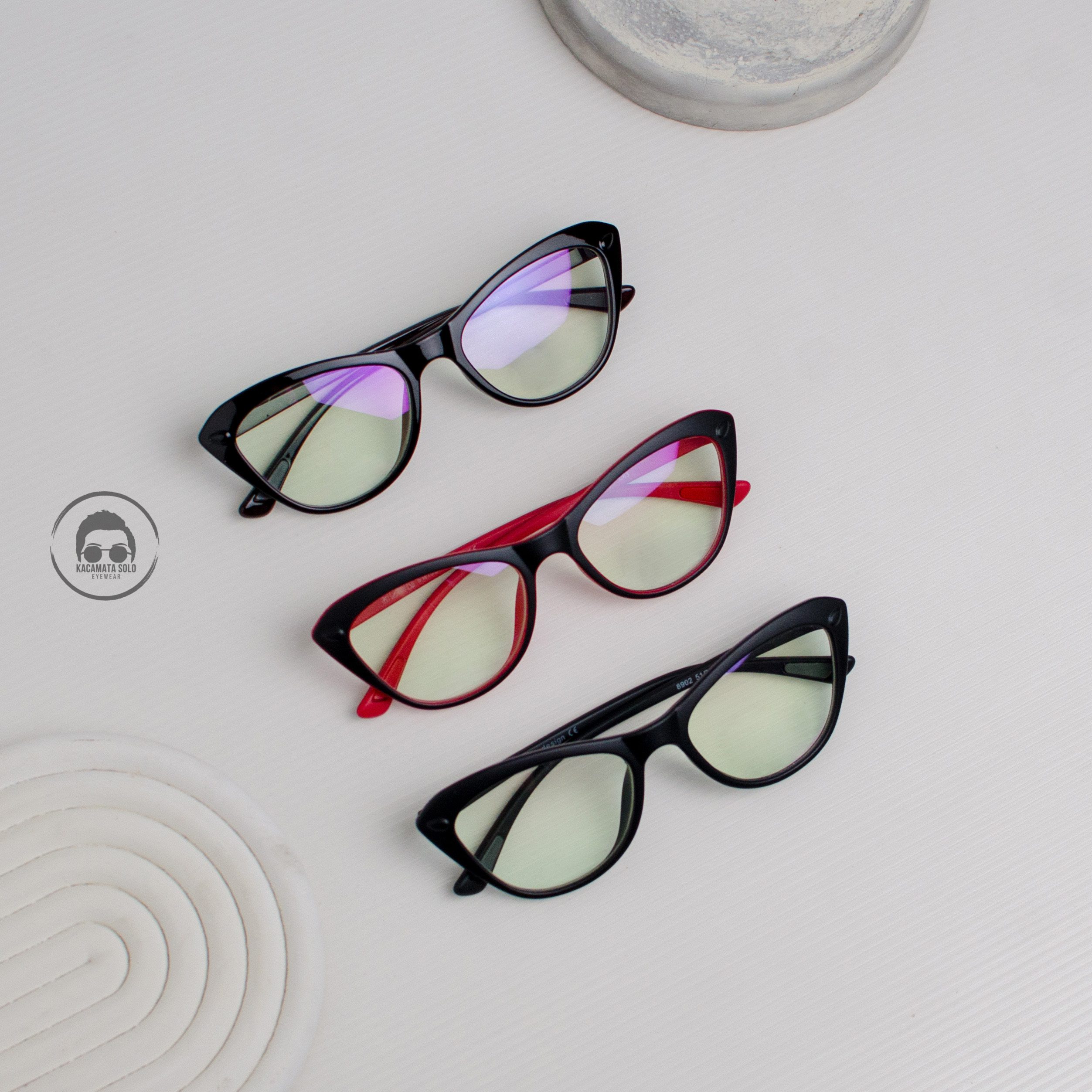 - Paling Cocok Untuk Wajah Bulat, Kotak, & Oval: Bentuk bingkai cat eye sangat ampuh untuk menyeimbangkan dan melembutkan garis rahang yang tegas, sekaligus memberikan ilusi dimensi pada wajah bulat.